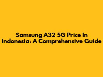 Samsung A32 5G Price In Indonesia: A Comprehensive Guide