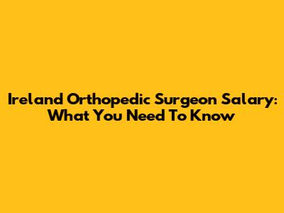 Ireland Orthopedic Surgeon Salary: What You Need To Know